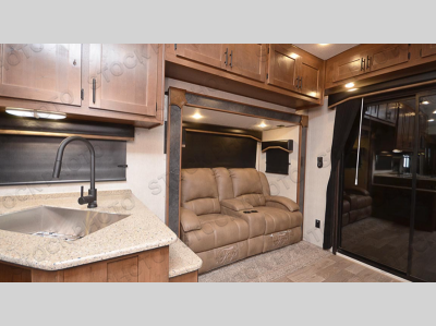 You'll love every minute spent in this cozy travel trailer. There is a rear patio deck with a rail system and stairs, along with a residential sliding glass door that leads to the rear living area. Your crew can play a game at the booth dinette or relax on the residential sofa with built-in recliners. If you're needing more sleeping space, just choose the optional sleeper sofa in place of the standard sofa. There are even optional TRX recliners if want that option as well! The fully-equipped kitchen includes everything you need to make meals each day, plus a 12V refrigerator and pantry for food storage. The flip-up counter will also come in handy when you need extra counter space. Head up front to find the dual entry bath and front master bedroom with a queen bed!