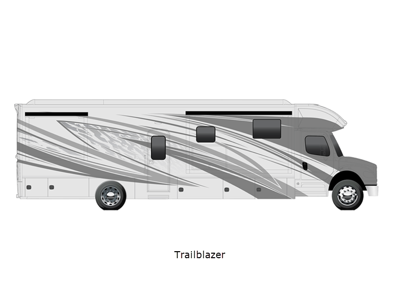 Sleeps 5 Slides 3 Length 37 ft 6 in Ext Width 8 ft 4 in Ext Height 12 ft 10 in Int Height 7 ft Interior Color Oak Bluffs, Seabrooke, Westfield Exterior Color Pathfinder, Ranger, Trailblazer, Voyager, Wayfinder, Polaris, Tundra, Atlas LR, Mojave Hitch Weight 20000 lbs GVWR 37600 lbs Fresh Water Capacity 150 gals Grey Water Capacity 75 gals Black Water Capacity 75 gals Generator 8KW Onan Quiet Diesel Fuel Type Diesel Engine Cummins L9 Chassis Freightliner M2-106 Plus Horsepower 360 hp Fuel Capacity 100 gals Wheelbase 285 in Available Beds Mini King Torque 1150 ft-lb Refrigerator Type French Door Residential w/Stainless Steel Doors Refrigerator Size 18 cu ft Convection Cooking Yes Cooktop Burners 2 Number of Awnings 1 Water Heater Type AquaHot 450D Hydronic AC BTU 30000 btu TV Info LR 50" 4K Smart LED TV, BR 32" 4K Smart LED TV, Ext. 43" 4K LED TV Awning Info Girard 2-Stage Lateral w/LED Lights w/End Caps Washer/Dryer Available Yes Shower Type Radius Electrical Service 50 amp Similar Floorplans