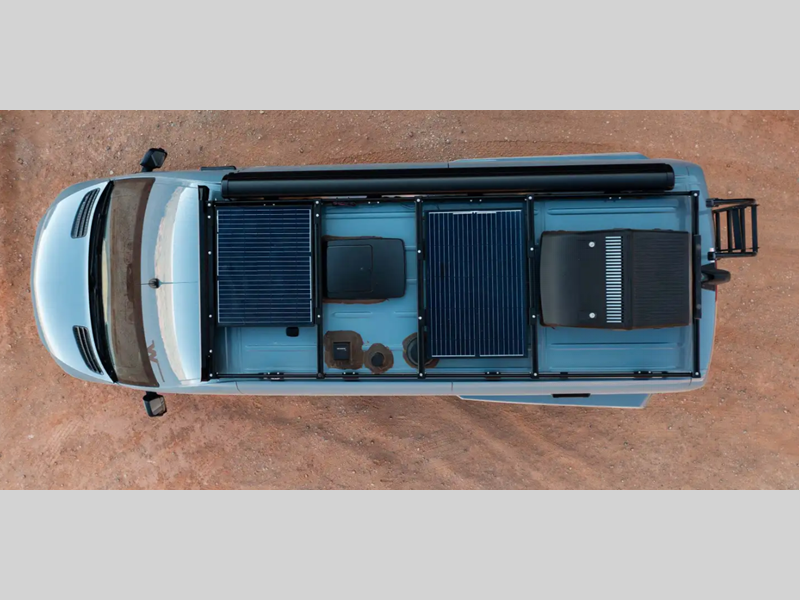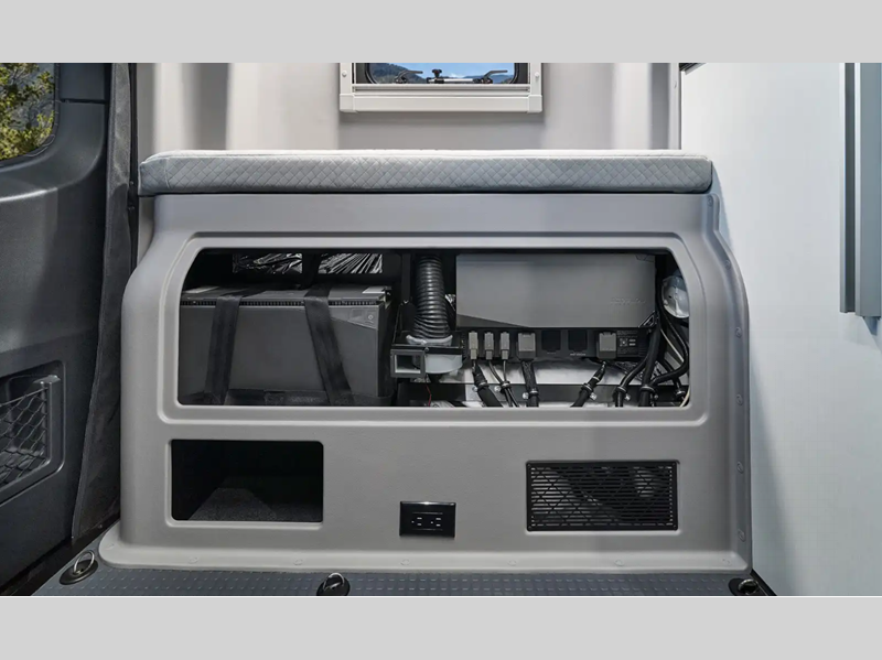 The interior of the Revel Sport is designed for comfort with lounge seating with a removable table, heavy duty vinyl flooring, and a versatile living space. Since this van features a power lift bed, you can utilize this space as a gear garage during the day. The exterior is just as accommodating with its luggage rack, movable ladder, side and rear screen doors, plus more!