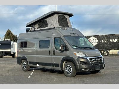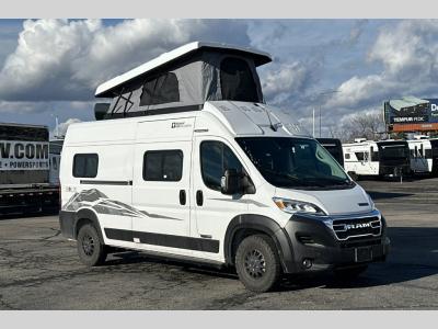 Sleeps 4 Length 19 ft 9 in Ext Width 6 ft 9 in Ext Height 9 ft 6 in Int Height 6 ft 3 in Interior Color Nomad Exterior Color Bright White, Bright Silver, Ceramic Gray, Sandstone Hitch Weight 3500 lbs GVWR 8900 lbs Fresh Water Capacity 20 gals Grey Water Capacity 20 gals Fuel Type Gasoline Engine 3.6L V6 Chassis Ram ProMaster Horsepower 280 hp Fuel Capacity 24 gals Wheelbase 159 in Available Beds Murphy Refrigerator Type Single Door Compressor Driven with Freezer Refrigerator Size 3.0 cu ft Cooktop Burners 2 Shower Size 31" x 24" Axle Weight Front 4629 lbs Axle Weight Rear 5291 lbs LP Tank Capacity 25 lbs Water Heater Capacity 2.6 gal Water Heater Type Truma Combi Eco Gross Combined Weight 12000 lbs Shower Type Wet/Bath Shower Electrical Service 30 amp Similar Motor Home Class B Floorplans