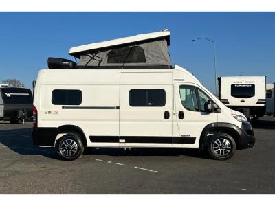 Each Solis Class B gas motorhome by Winnebago sits upon a fuel-efficient Ram ProMaster chassis with a 3.6L V6 engine to power your adventures. You will love the cab conveniences that make each trip enjoyable, like the radio/review monitor system touchscreen and the crosswind assist to keep you steady on the road. Some of the hassle-free amenities you will appreciate are the exterior wash station, the Eco-Hot water system, and the water center control panel located inside the right rear door. Head indoors to find heavy-duty vinyl flooring throughout, a laminate countertop and a stainless steel sink in the galley, plus tinted coach windows for added privacy. The Solis also features off-grid capabilities with its two deep-cycle Group 31 batteries and 220-watt flexible surface solar panel with a controller. Adventures awaits in the Solis Class B gas motorhome!
