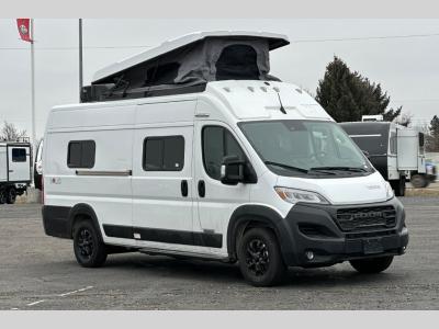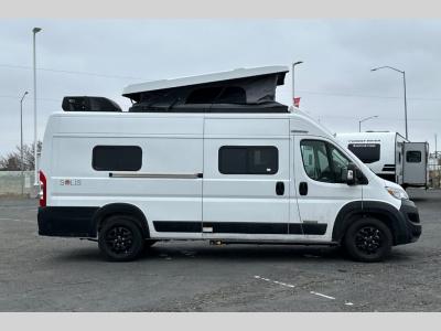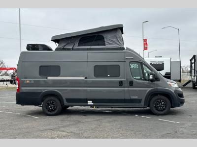 This camper van with an L-track storage system is perfect for those needing more storage space for their hiking and biking gear. You can stay powered up with the 2,800-watt gas generator, and there is a 13,500 BTU air conditioner with directional ducts and dial control that will allow you to come inside to cool off after a trail ride. A Murphy+ bed comes standard, and any guests that tag along can sleep in the pop-top sleeping area! If you choose to remove the pop-top, you'll enjoy the deluxe powered ventilator fan instead. You'll find the wet bath to come in handy when you want to clean up, and the dinette seating with a removable pedestal table will provide a place to enjoy your dinner at.